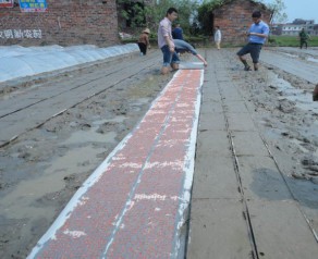 雜交稻單本密植大苗機插“三一”印刷播種技術:即一粒種、一棵秧、一蔸禾(三一)栽培技術,該項技術要點:精選種子、種子包衣、定位播種、工廠化育秧或場地育秧、播種覆蓋、大苗機插;具有減少大田用種量、節省種子成本三分之二,縮短秧齡期、緩解機插雙季稻季節矛盾,增強秧苗品質、提高秧苗耐機插損傷能力等特點。