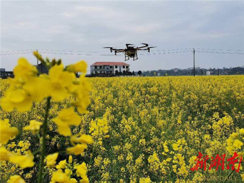 3月11日,安仁縣平背鄉鑫亮油菜基地里,飛防手李嘉干正在操作一臺無人機給100多畝連片油菜噴施硼肥;農技員陽彬彬則忙著指導農民如何清溝瀝水,防澇保墑,確保油菜豐產增收。